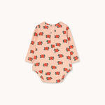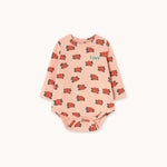 Šis spalvingas „Camelias“ rašto bodis pasiūtas iš minkštos, kvėpuojančios ekologiškos medvilnės. Jis pasižymi laisvu kirpimu, ilgomis rankovėmis ir spaude apačioje, kad būtų lengva persirengti. Patogus kasdienis drabužis su žaismingu akcentu!