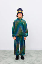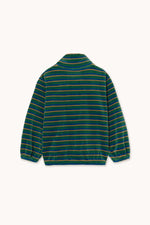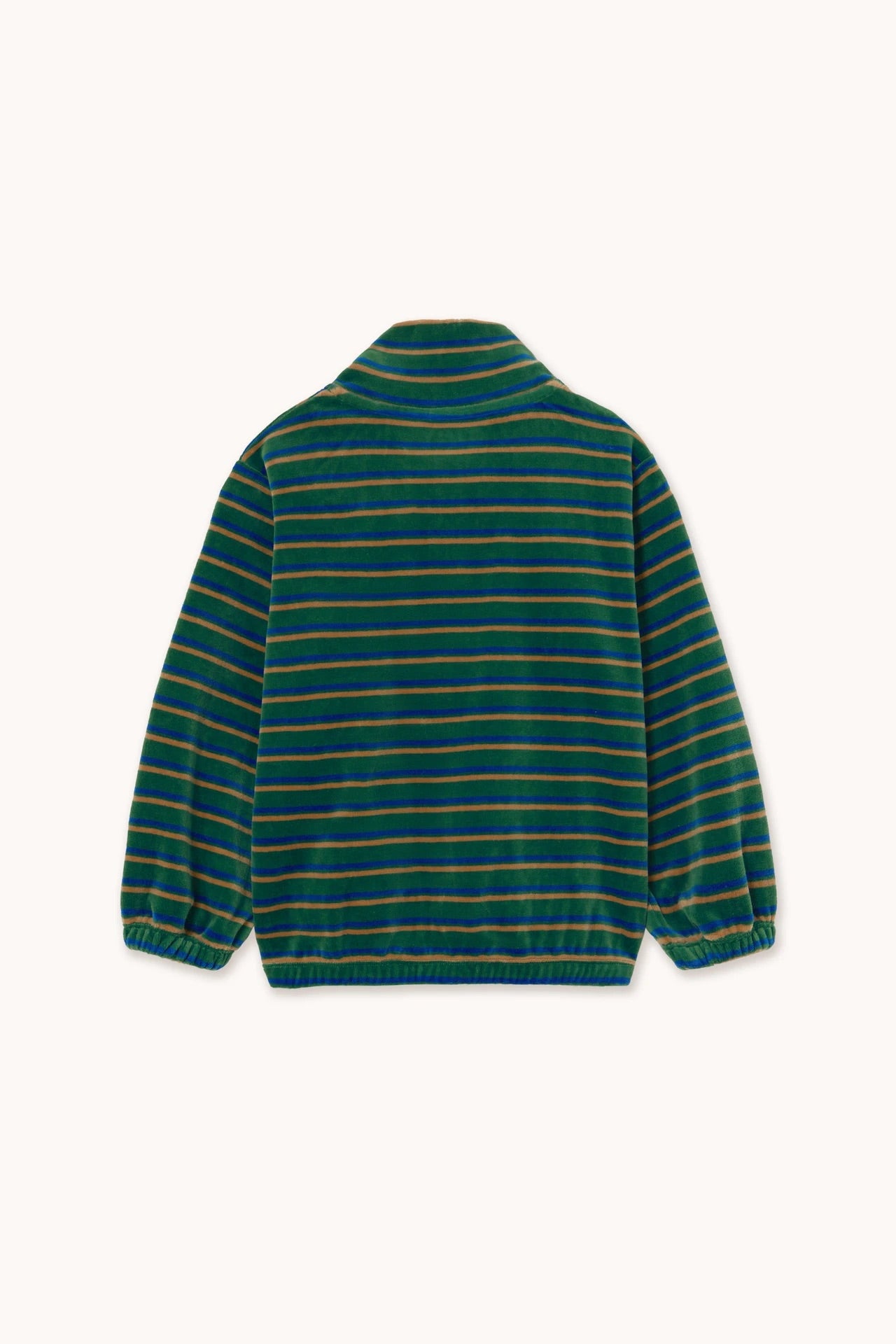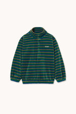 Stripes that never go out of style—this stripes sweatshirt is crafted from 100% organic cotton velour. It features a comfortable mockneck silhouette with elasticated hems and a half-front button opening. Perfect for casual outings or cozy days at home, this sweatshirt offers both style and comfort with a clear focus on quality.