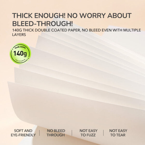 Unleash your creativity with the Mideer sketchbook! This sketchbook for artists of all ages has a thick 140gsm paper that is non-absorbent, making it suitable for a wide range of artistic mediums such as markers, crayons, watercolours, pencils, acrylics and more. The A4 size makes it easy to carry, so you can sketch and draw wherever you feel inspired.