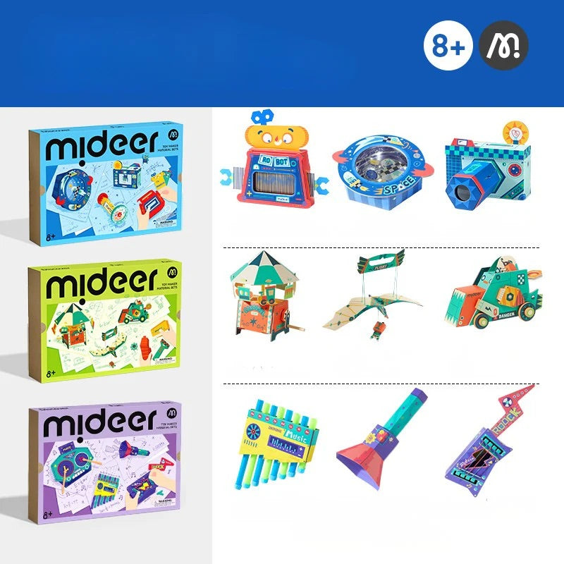 This series of mideer DIY activity kits covers a total of three different themes - sounds, optics and motion. It not only develops a child's motor skills, but also stimulates curiosity and introduces them to the basic properties of physics.