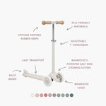 Ši ekologiška medžiaga gaunama iš sertifikuotų atliekų šalinimo partnerių ir perdirbama iš išmestų daiktų, tokių kaip buteliai, maišeliai, puodeliai ir žvejybos tinklai. Šis paspirtukas, sukurtas augti kartu su jūsų vaiku, ne tik lavina pusiausvyrą ir koordinaciją, bet ir įkūnija mūsų įsipareigojimą mažinti poveikį aplinkai, pasitelkiant apgalvotą dizainą.