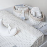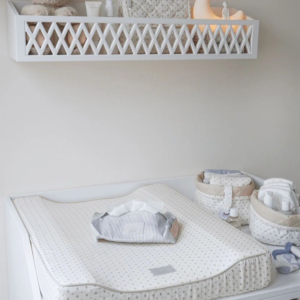 Gražiai pagamintas kūdikio reikmuo ramioms ir patogioms akimirkoms – galimas įvairių gražių raštų, kad atitiktų jūsų pervystymo vietos stilių. Puiki idėja kūdikio sutikimo dovanai.