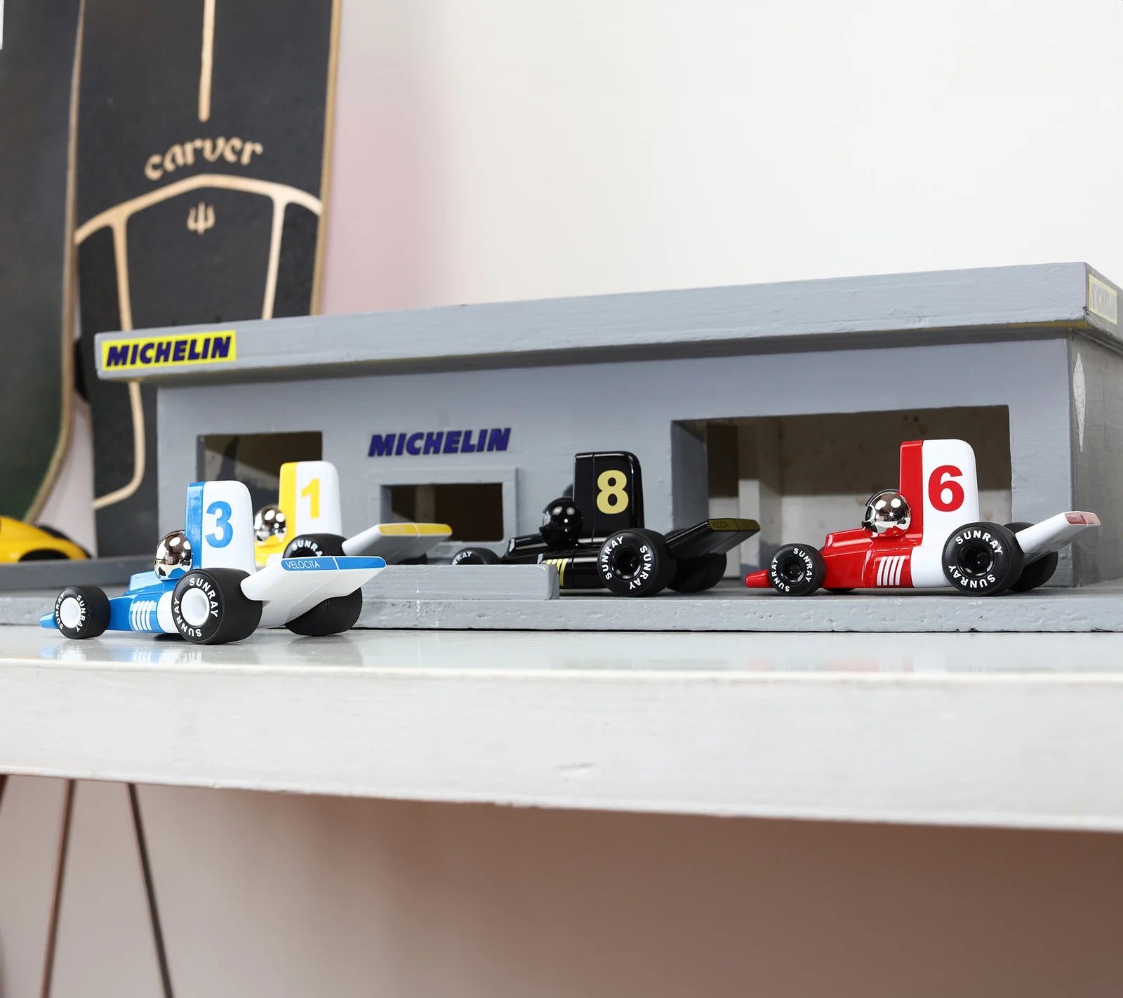 The Velocita collection by Playforever was inspired by the F1 scene of this era. Rubber tyres, stream-lined shapes and vibrant, shiny colours make this one of the coolest cars they have ever made! Its miniature size is perfect for kids, but it looks equally striking on the shelf or mantlepiece too. A real collector's piece.