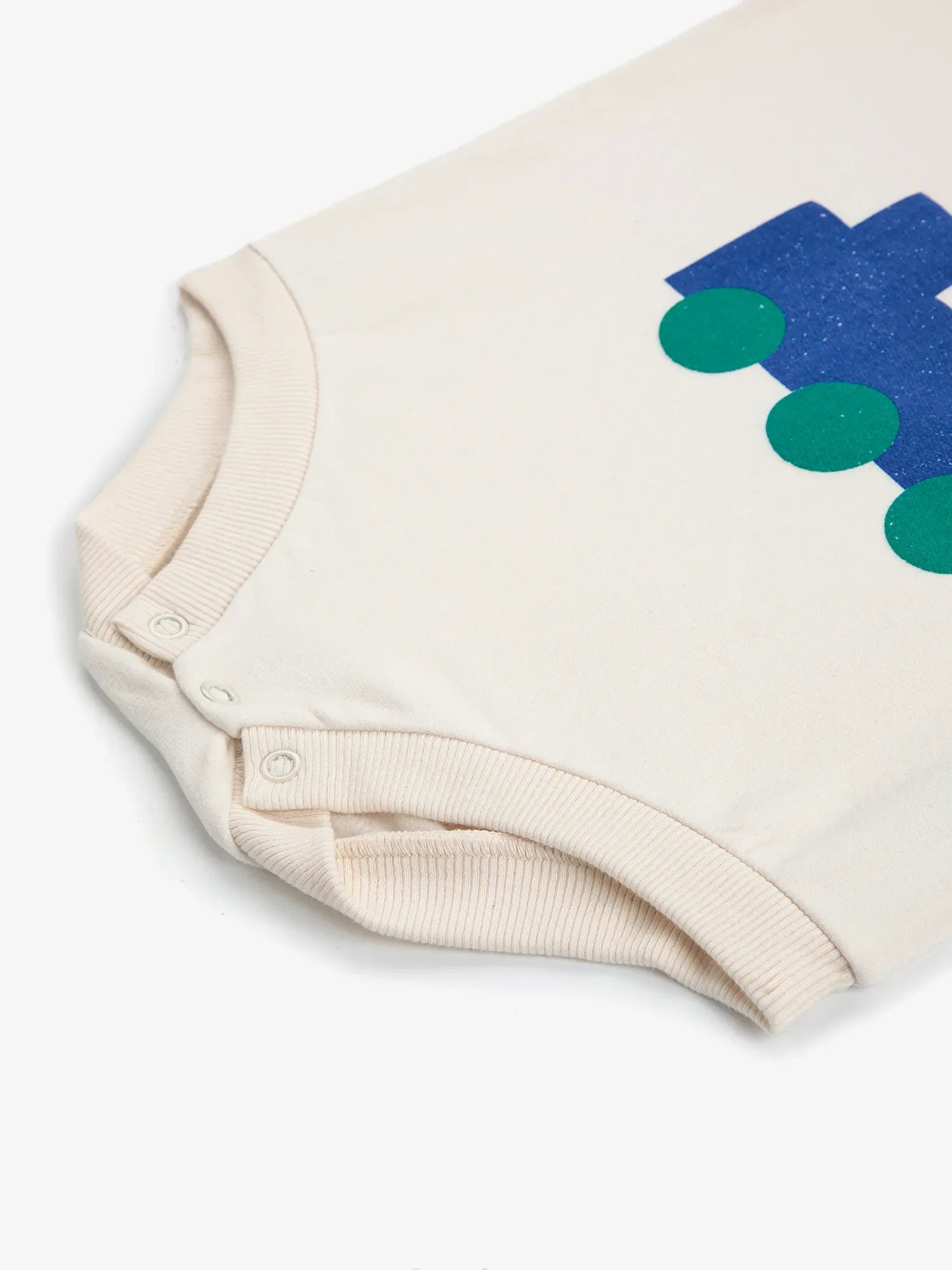 White body. Designed with shoulder snap fastening, crotch snap fastening, ribbed cuffs, loose fit, ribbed bottom, round neck and fleece. Made in Spain.