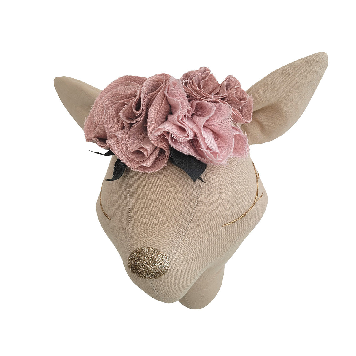 Unit price / perLinen deer with flowers is a beautiful, old-fashioned decor for every nursery and kids room. It will give a unique and charming look to any interior design. The linen deer with flowers is handmade from the highest quality velvet. It is simply a real standout with high-end finish.