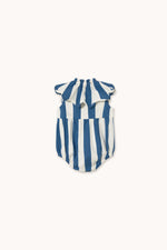 This striped body combines comfort, style, and practicality for little ones. Made from a soft, breathable cotton blend, it features a round neckline with a front opening for easy dressing. The decorative faux bow with button adds a charming detail, while the bottom  closure allows for quick and comfortable diaper changes. Its relaxed, comfortable fit ensures total freedom of movement, making it perfect for everyday wear.