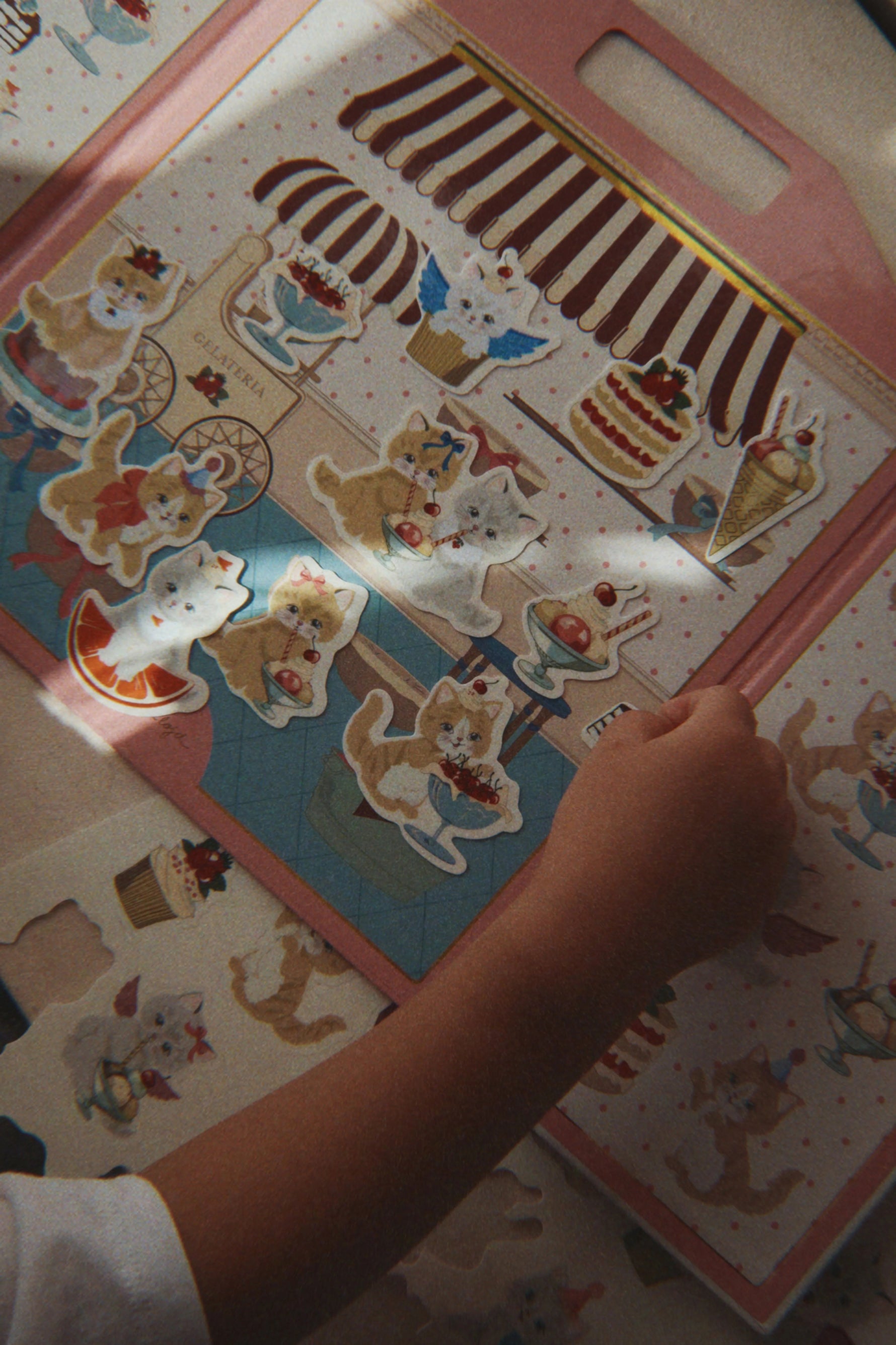 Magical sticker book that invites you into the sweetest little Kitty Gelateria.