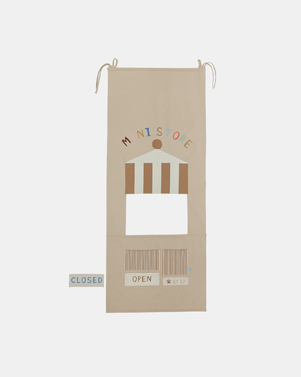 The Yummy Mini Store offers endless play possibilities! Hang it in a doorway using the loops or on a telescopic rod. Perfect for playing grocery store, with goods stored in the front and changeable open/closed signs. Encourage imaginative play and creativity with this versatile and interactive toy!