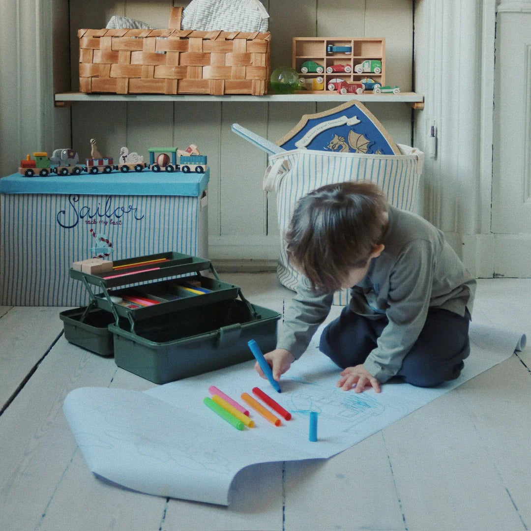 This charming little art kit is both a fun storage solution and a delightful decoration. Inside this handy creative caddy, you'll find: 12 coloring pencils, 6 markers, 4 stamps, 2 sticker sheets, 2 gem sheets, a notepad, and an A5 coloring book—everything needed for endless artistic adventures!