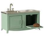 The heart of every home is the kitchen. This metal kitchen has a beautiful color tone and has many playful details such as a cabinet door, sink and an oven with a freshly baked pie. It is a perfect size for the mouse family.