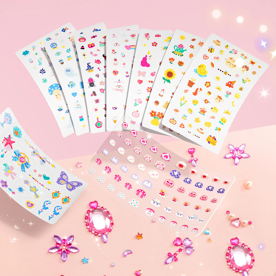 This is a magical mideer set with more than 1000 stickers designed to inspire creativity and imagination. This set is perfect for children who love to decorate and personalise their look with beautiful stickers. Kids can use different types of stickers to create their own fairy tale designs on their nails, hands, cheeks and much more.